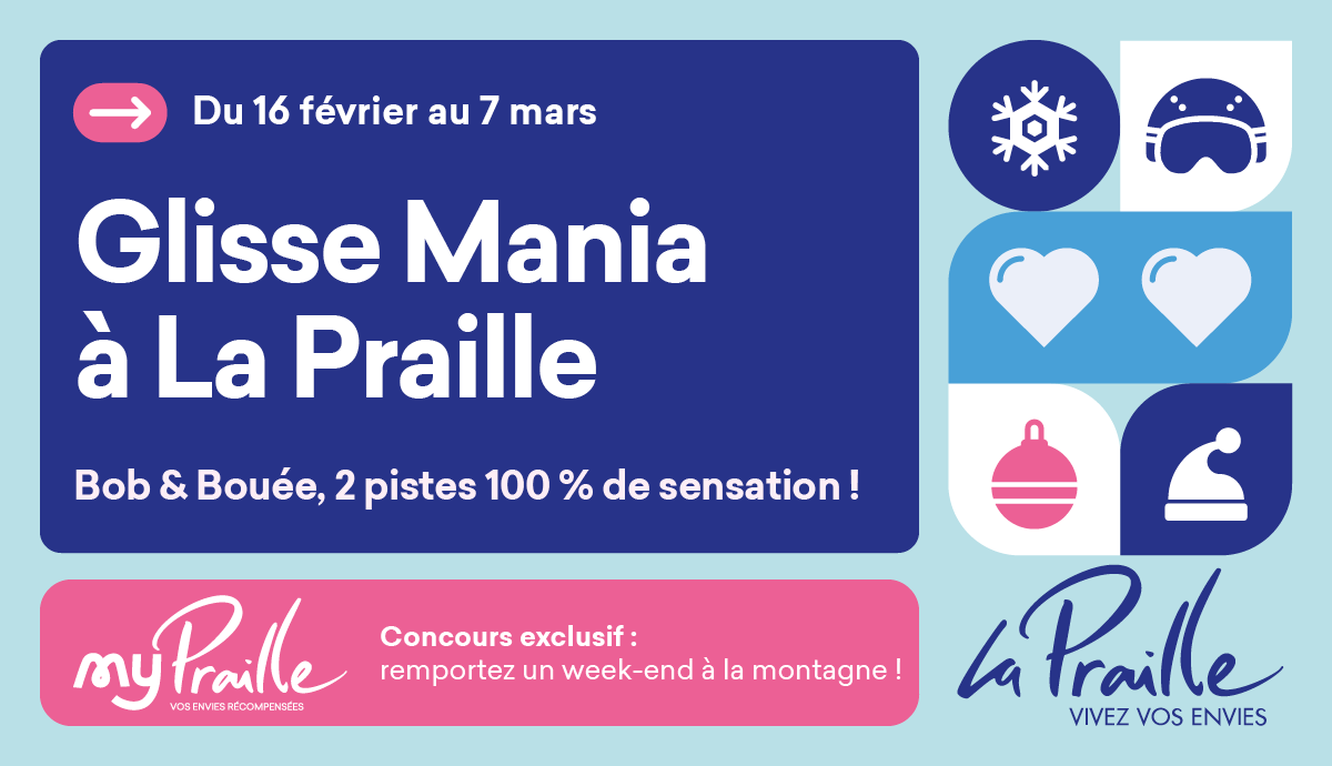 Glisse Mania revient à La Praille du 16 février au 7 mars avec des pistes de bob et de bouée, des dégustations et un Grand Concours!